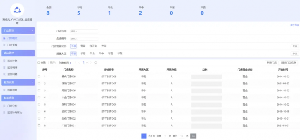 统一门店主数据,通过门店卡片,记录开店时间、所属大区、店长等关键信息,全国门店分布一目了然,每家门店情况清清楚楚,为门店管理应用夯实数据基础。