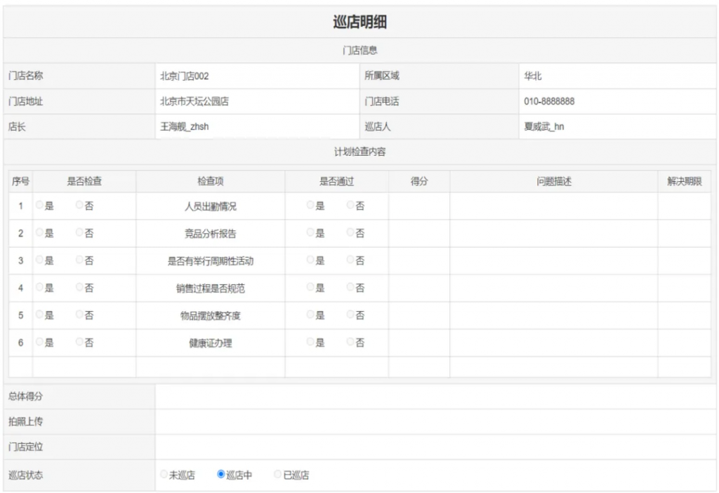 巡店明细确保重要工作不遗漏,助力巡店人一项一项落实到位,让巡店有条不紊。