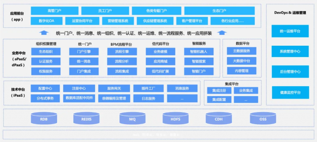 除了低代码能力外,蓝凌MK-PaaS平台作为云原生数字化办公基座,还能支撑组织管理、门户管理、BPM流程、数据管理&整合框架、内容引擎&知识搜索等能力。