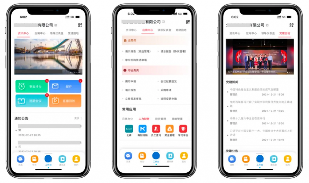 A:此次重新设计与配置了应用中心、党建园地、资讯中心、领导仪表盘等四个专属工作门户;让门户按角色或部门汇集资讯与应用,实现工作更有条理、交互更人性化、高效的目的。