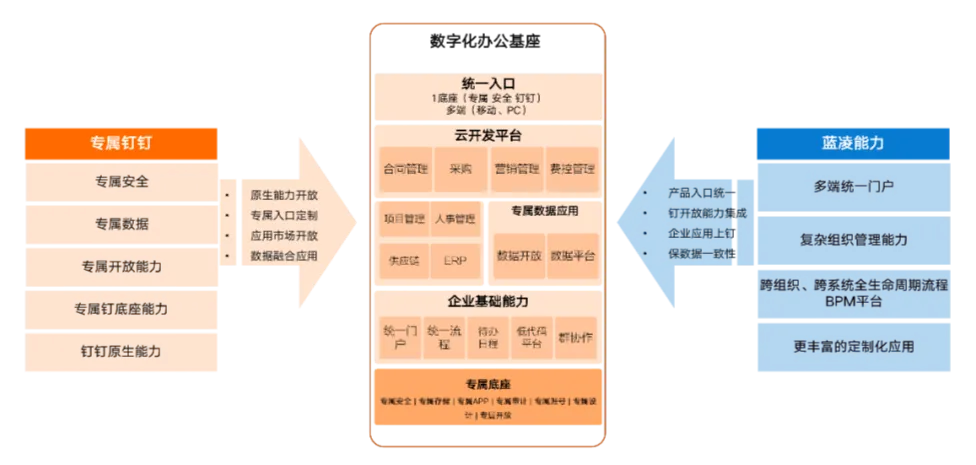 专属钉钉蓝凌版较标准化钉钉的能力提升两个层级,不仅让企业办公效率提升“立竿见影”,更为企业提供了一个强大的数字化办公基座,支撑组织数字化、业务数字化可持续升级。
