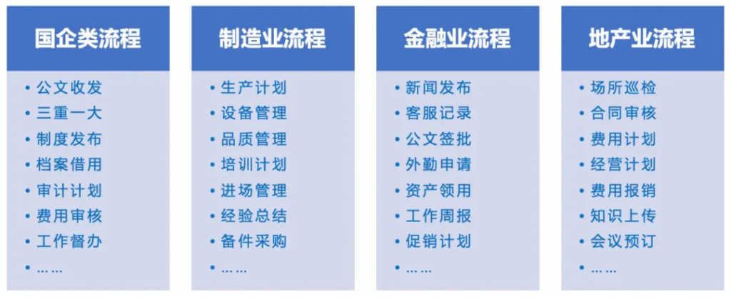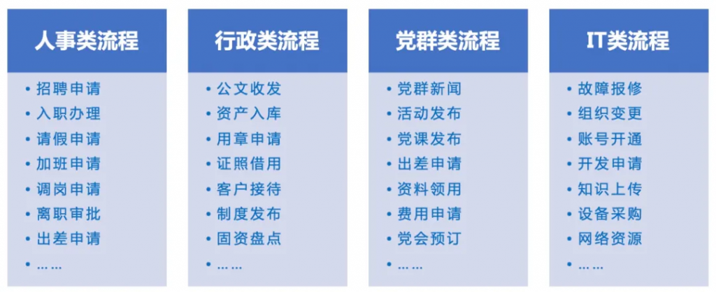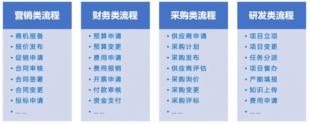新一代数字化流程,具有在线化、智能化、集成化、移动化等特点,能连接OA、ERP、EHR、SCM、CRM、SRM等系统,打造更高效端到端业务流程。