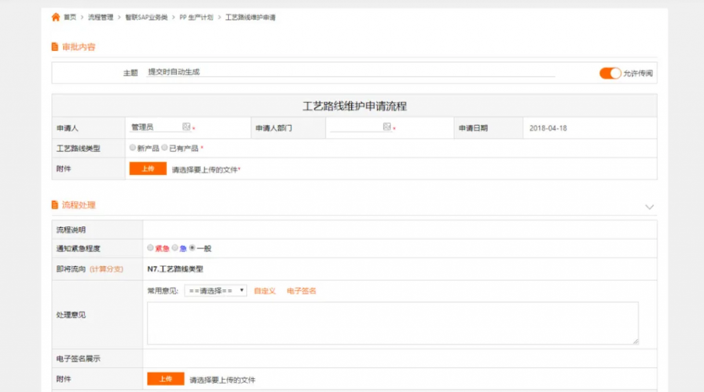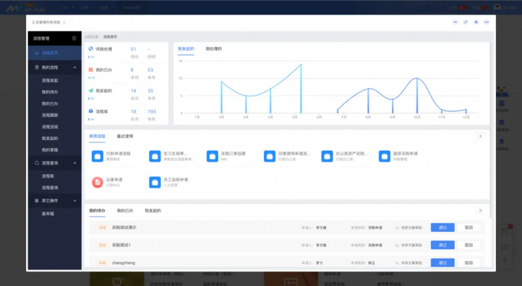 8、移动流程高效:手机上即可完成通过、驳回、转办等审批,全面提效业务协作。