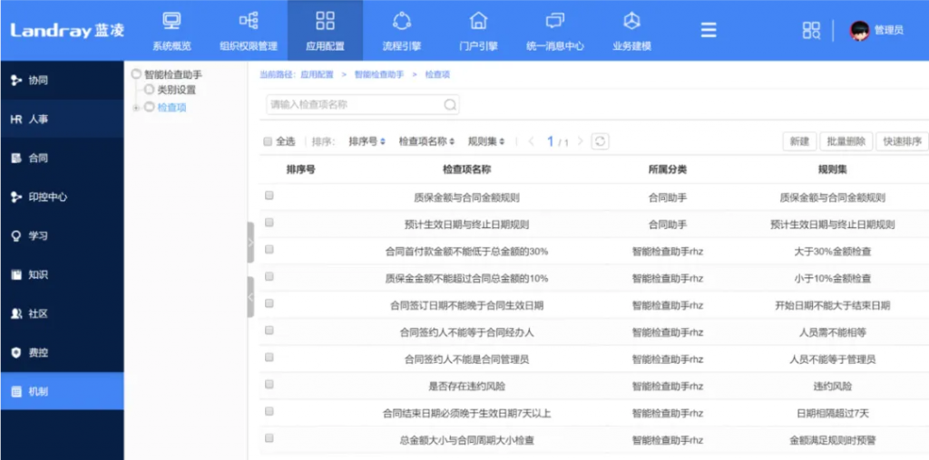 全新的智能检查助手,基于规则引擎构建,用户在进行表单填写和在表单审批时,辅助用户进行业务判断和决策,例如重大合同条款提示对比,让领导“审”得更精准。