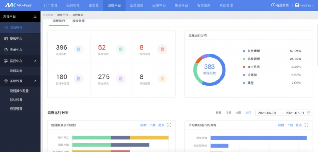 除了强大的智能化流程审批能力,蓝凌MK-PaaS的LBPM平台还能提供统一的流程服务引擎、统一流程模板中心、统一流程对接中心、流程个人中心、流程监控中心,流程分析中心,构建企业跨业务、跨系统的统一高效流程服务平台,帮助企业实现流程体系落地,并实现流程的精益化运营、数字化洞察及持续性优化。