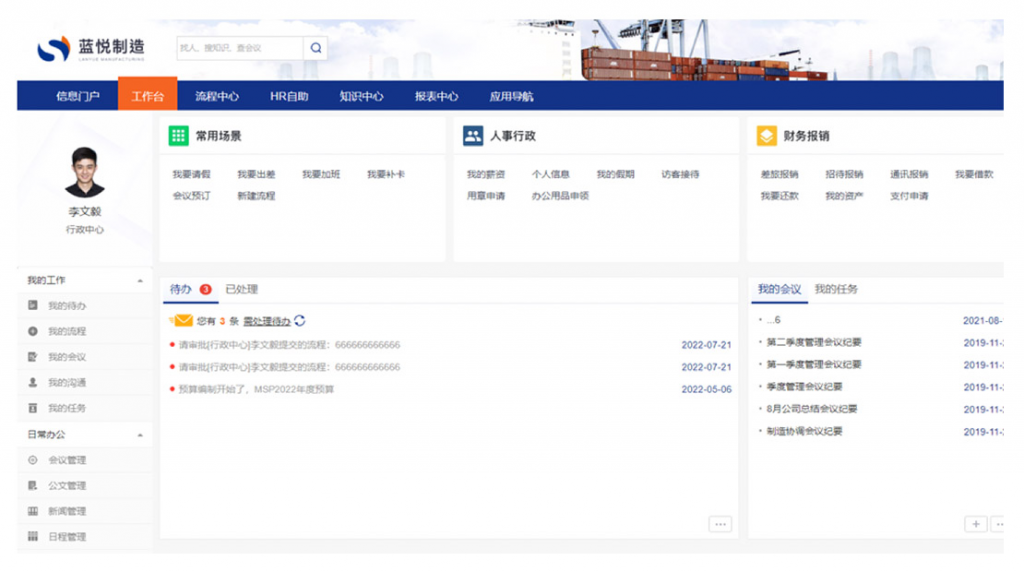 根据不同组织/层级/角色等构建不同门户,涵盖集团门户、分子公司门户、专业门户、项目门户、高管决策门户、员工自助门户等,满足全员个性化办公求