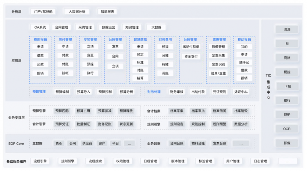 实现预算编制、预算申请、费用申请、费用报销、付款等全周期管理,实现费用自动归集统计、自动传递凭证或数据到ERP等第三方系统,让费用管理透明、合理、高效