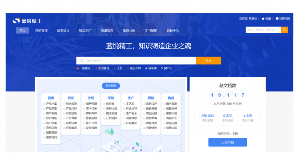 打造研发指引知识地图、研发知识社区、研发知识库等,并设置研发新产品、工艺、材料专栏,集合展示最新研发成果,助力制造企业研发端的知识沉淀、利用