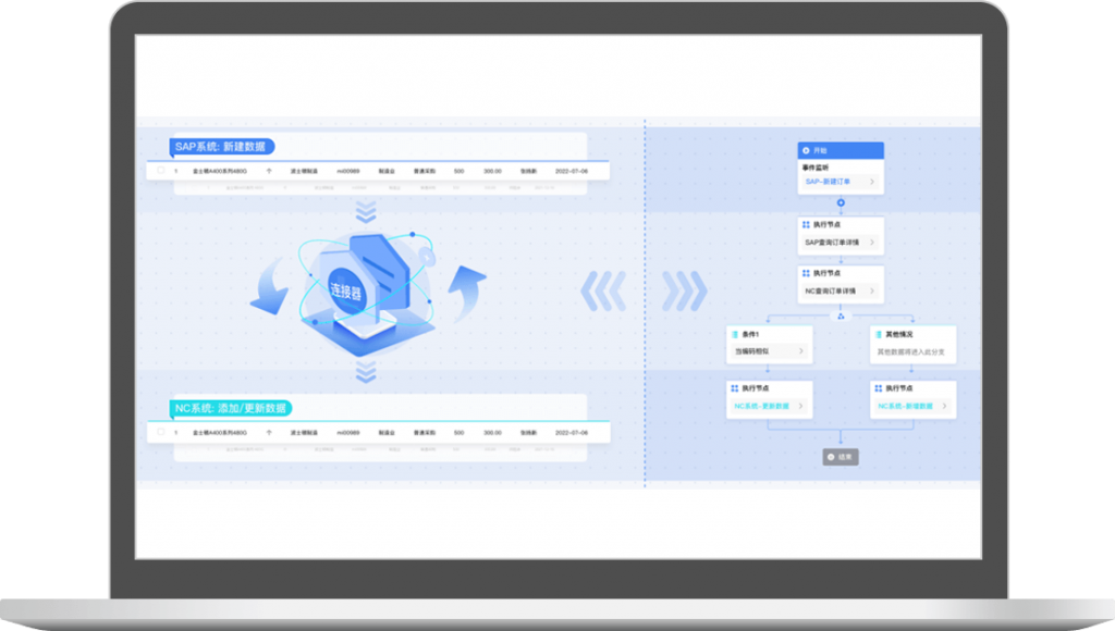 帮助企业打破组织/能力/业务/数据/技术孤岛,构建生态化的企业;提供接入、接出集成服务,支持SOAP、 REST、JDBC接口服务,提供专项业务应用组件